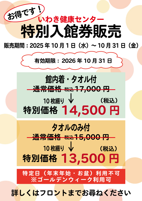 ※入館回数券・各種会員会費・ビンゴカードはご利用料金に含めません