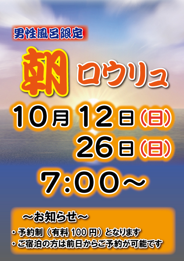 男性風呂限定 朝ロウリュ開催!