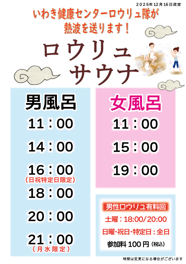2025年12月16日より男性ロウリュを変更いたします