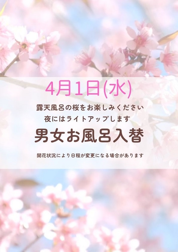 【4月1日(水)】露天お花見男女お風呂入替