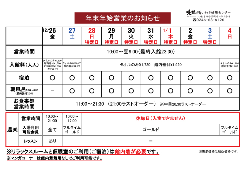 < 男性風呂限定 朝ロウリュ開催! | 一覧へ戻る | 入館券販売のお知らせ >