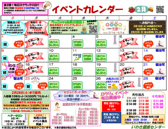 2026年2月のイベントカレンダーです。